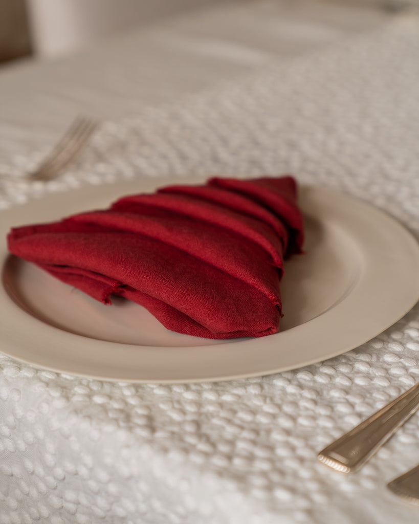 Completing the ensemble are our TAB light linen napkins—versatile companions that effortlessly transition between classic tone-on-tone settings and more creative, contrasting color palettes. In the unmistakable mix & match Society Limonta style, these napkins add a touch of whimsy to your table. Crafted in a slightly froissé-style from soft, lightweight linen, they offer a tactile indulgence—smooth to the touch and easy to wash.